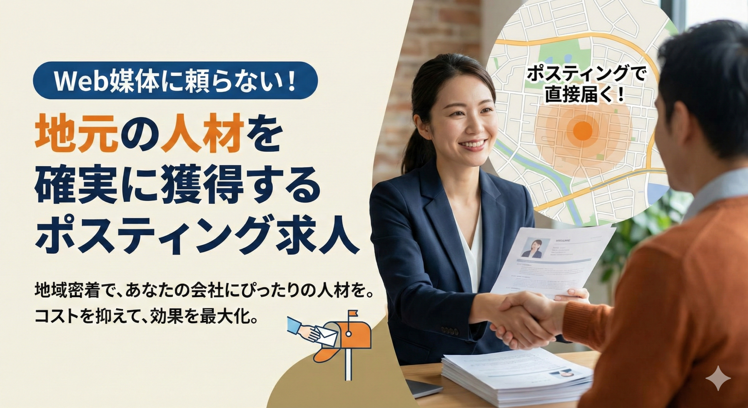 実は、ポスティングは「求人活動」にも絶大な効果を発揮します。インターネットの求人検索を自ら行わない「潜在的な求職者」に直接アプローチできる、ポスティング求人の強みをご紹介します。