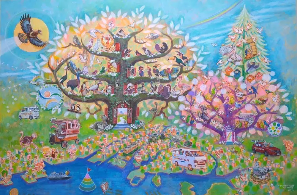 この絵に描かれた3本の木は、ファーストスタッフの3つの事業を象徴しています。